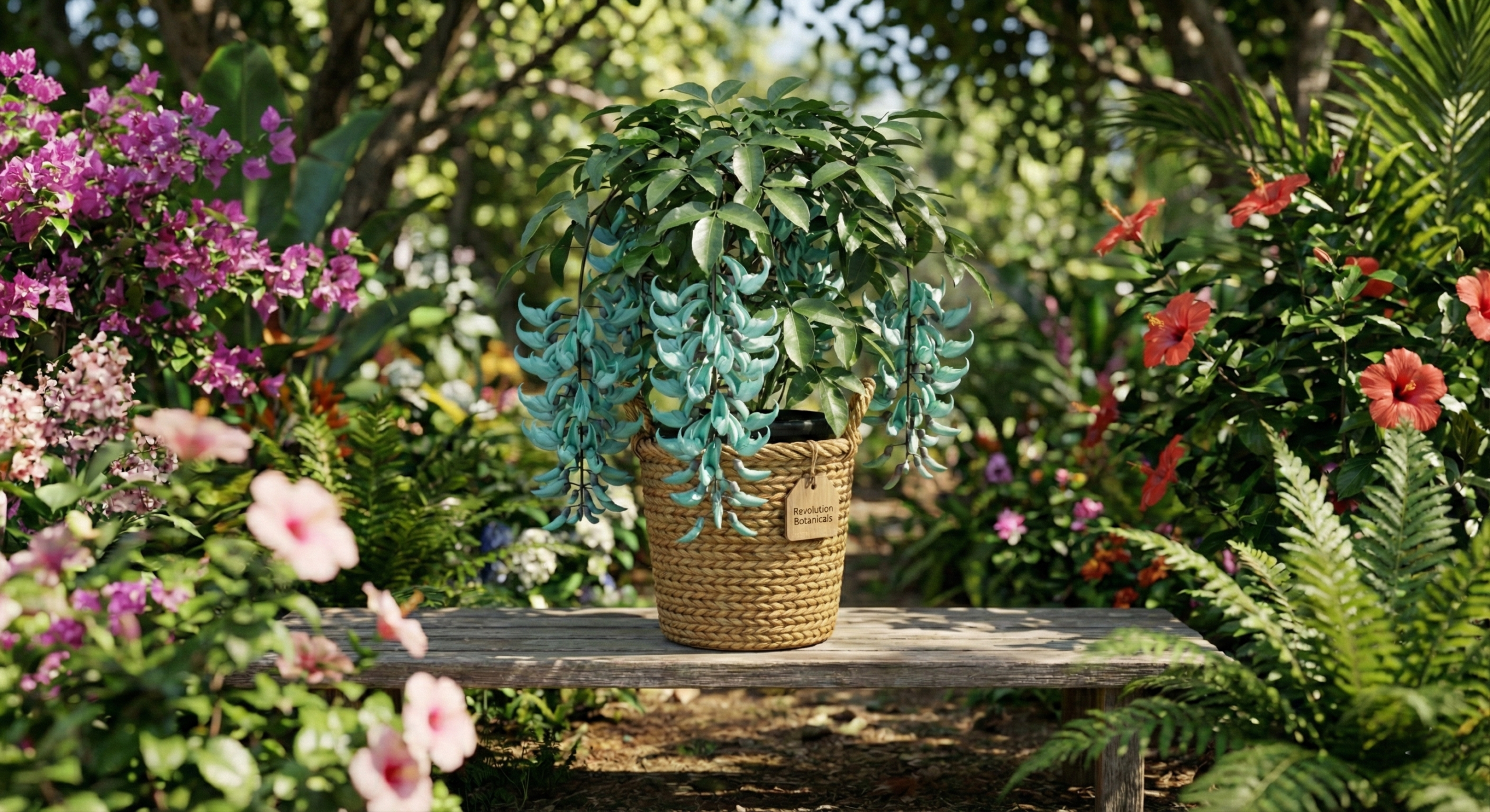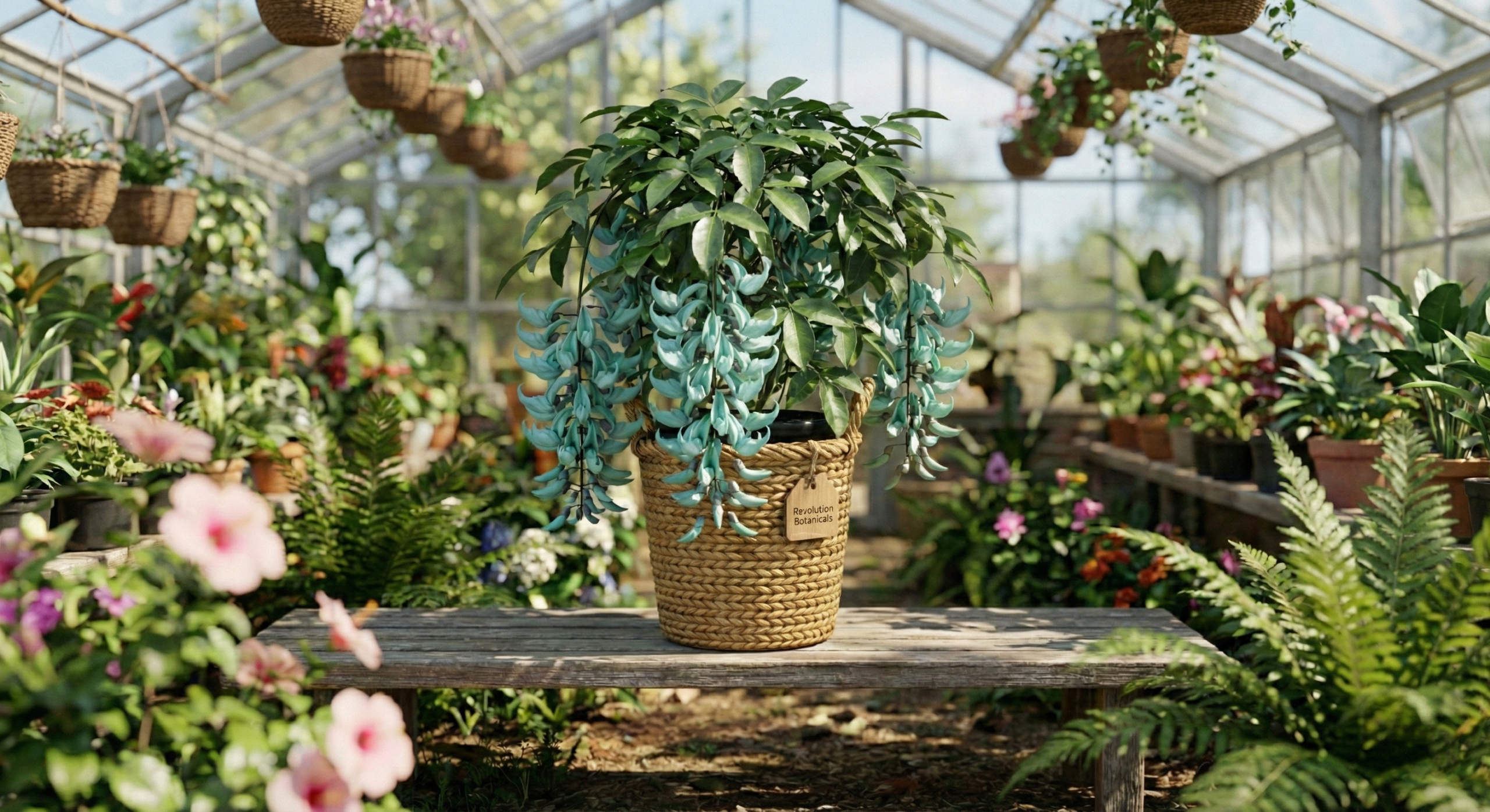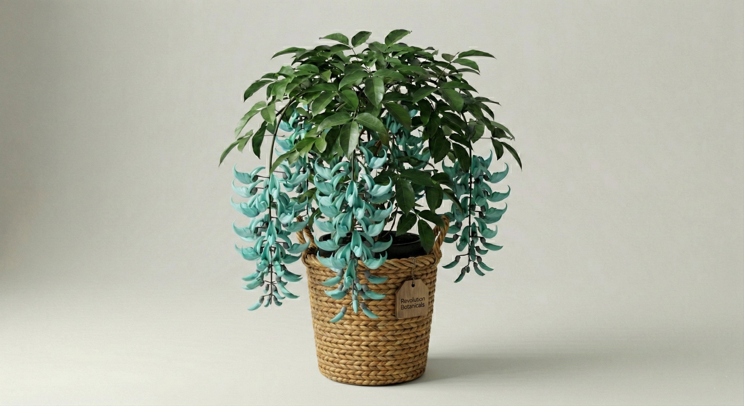 Add a breathtaking spectacle to your garden. A striking, Rare Jade Vine native to the Philippine rainforests, it produces magnificent, cascading clusters of luminous, claw-shaped turquoise flowers. It is widely considered one of the most uniquely colored plants in the world.
